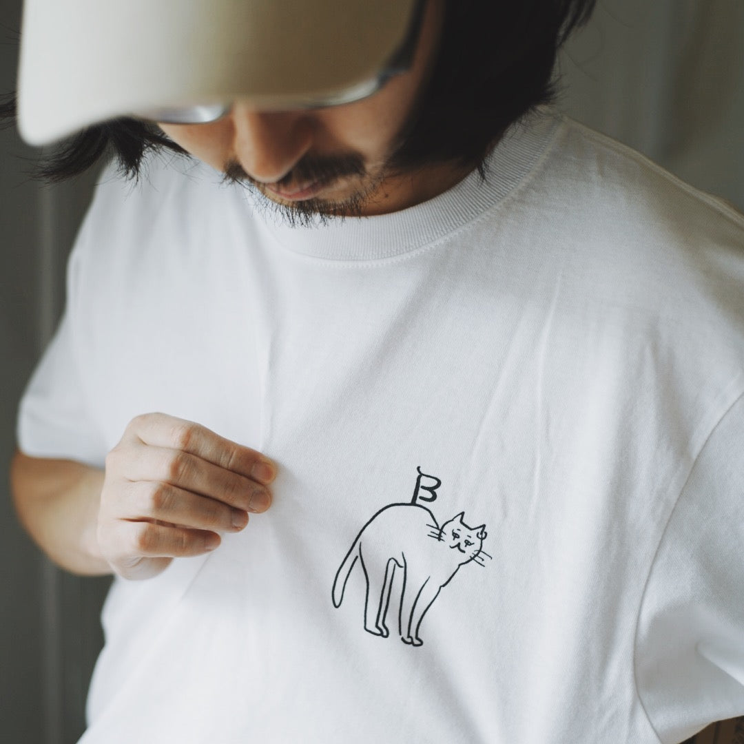 ネコは視力が約0.2しかないという何ということのない事実を、ちょっとクールにデザインしてみました。前に小さなネコロゴ、後に大きなイラストデザインを入れています。