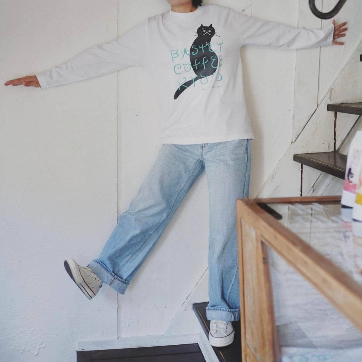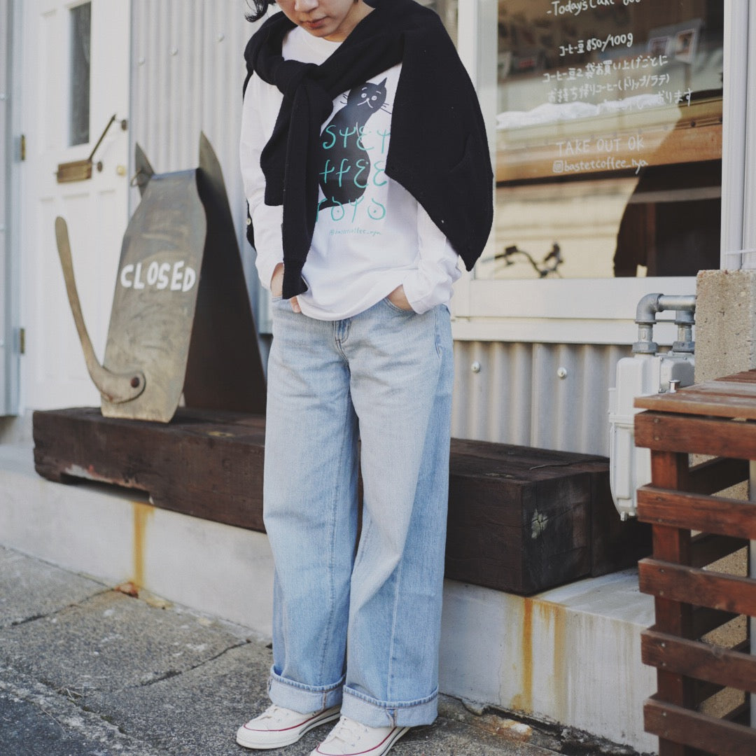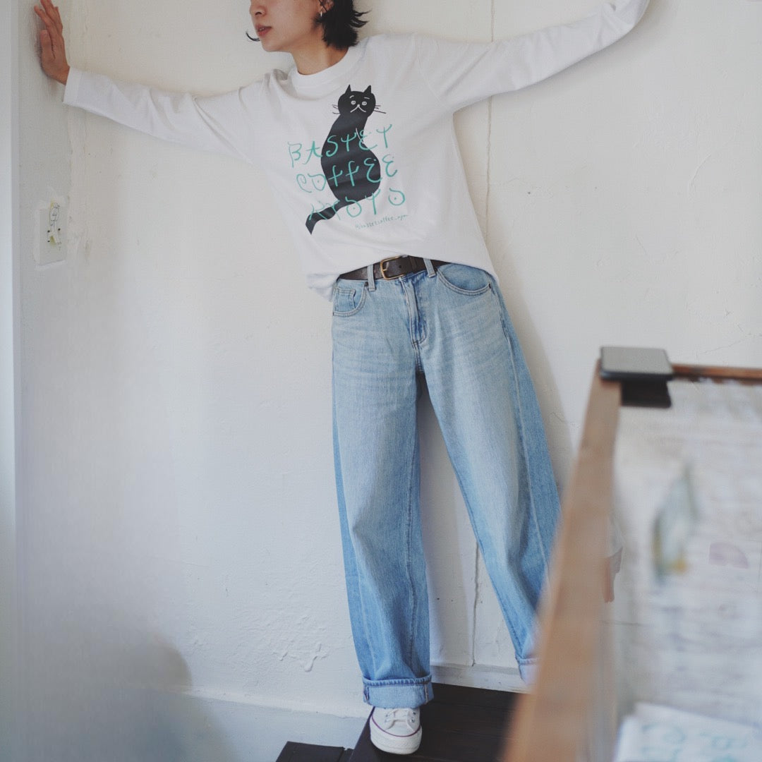 長袖ネコTシャツ(白:ペペ)