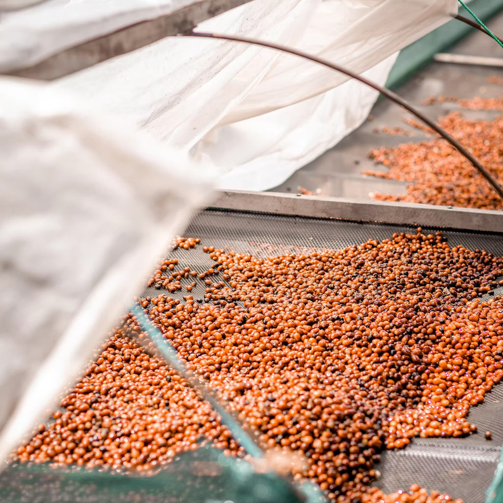 伝統的なナチュラル製法ですが、ゲイシャの特徴を活かしたクリーンなナチュラルロットを作るために、非常に手間暇がかけられています。収穫後、ドライミル搬送後、乾燥中と幾度も豆の選別が行われるほか、乾燥時間や撹拌の回数など細かいところまで調整を重ね「世界最高のナチュラルゲイシャ」を見据えた味づくりを行っています。